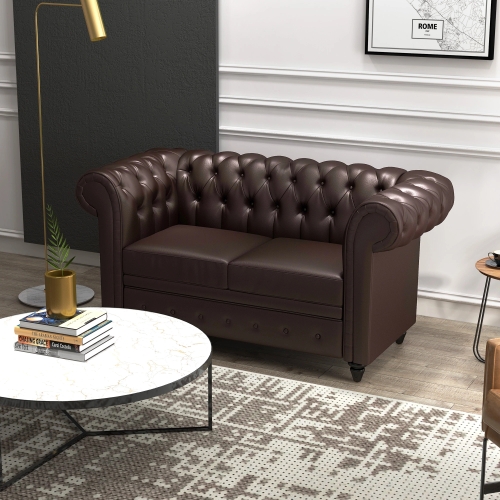 HOMCOM Canapea cu 2 locuri din piele ecologica, 160x84x80 cm maro